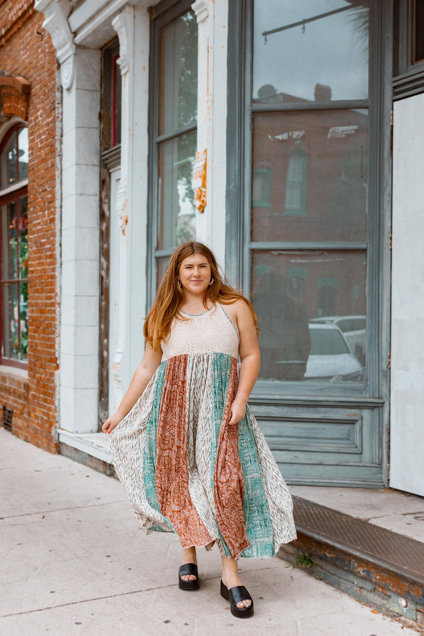 Oli & Hali boho maxi dress with halter tie string eyelet design top